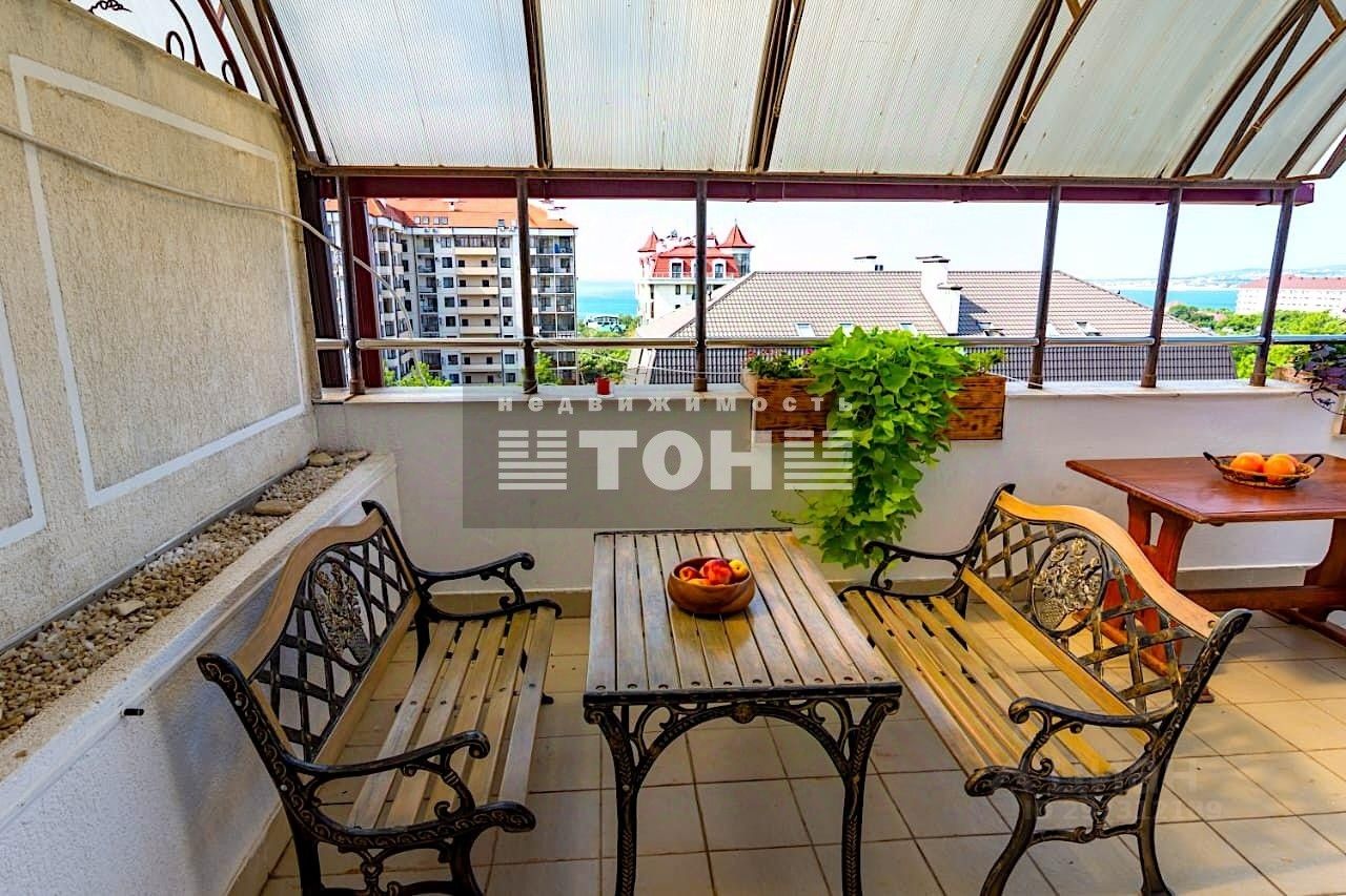 Состоит из двух изолированных спален, гостиной, кухни, двух санузлов, двух гардеробных, террасы (30 кв.м).