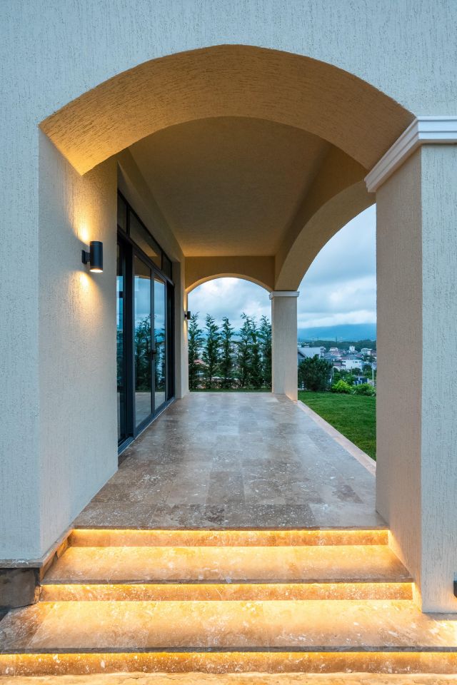 Цокольный этаж спроектирован таким образом, чтобы вместить спальни для обслуживающего персонала, раздевалку для гольфа и уютный хамам с сауной. Кроме того, здесь расположено большое пространство, которое может стать бильярдной, домашним кинотеатром или спортивным залом — всё зависит от ваших предпочтений.