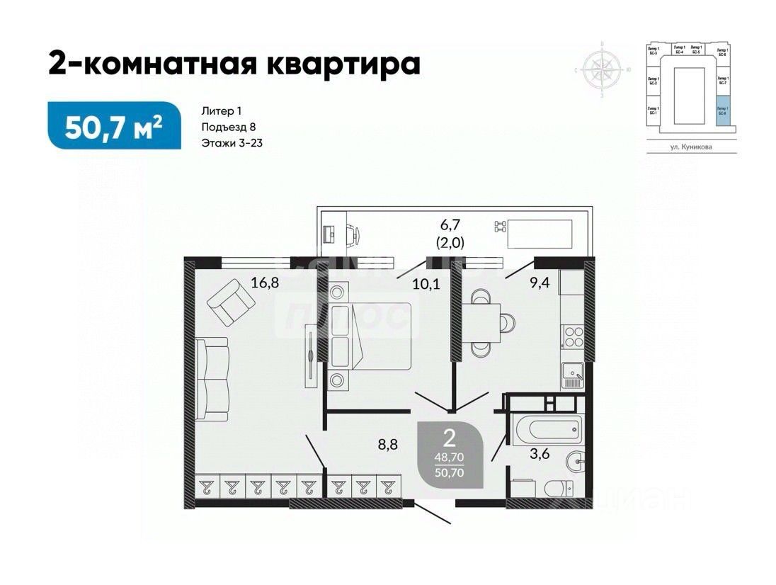 продам 2-к, Куникова, 477 700 000 ₽