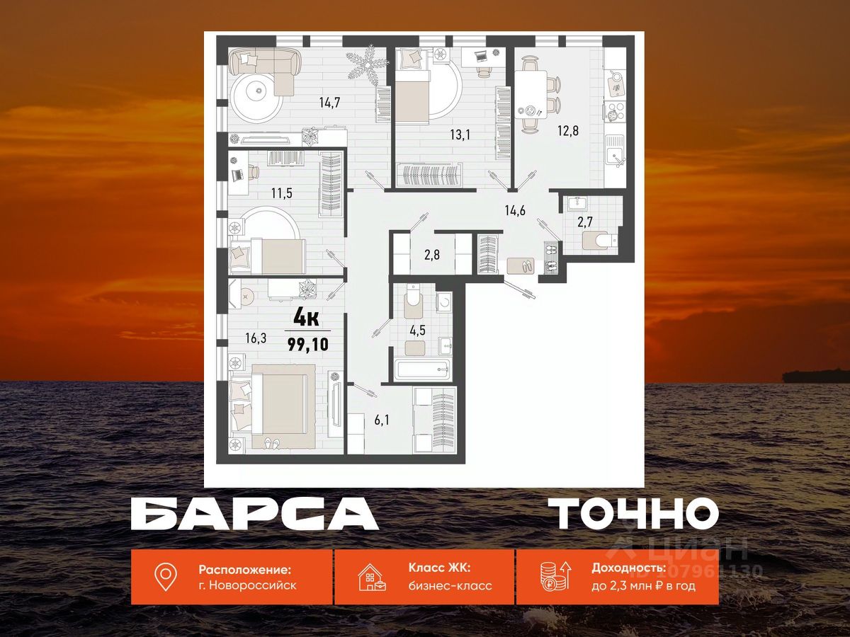 продам 4-к, Новороссийск28 802 000 ₽