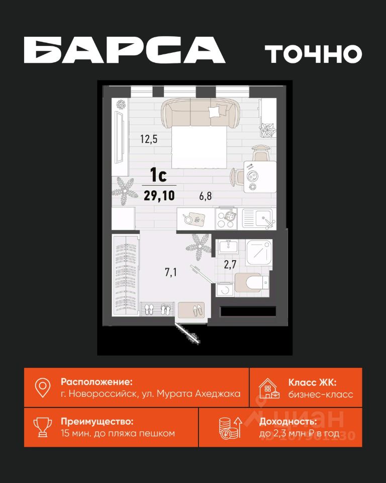 продам 1-к, Новороссийск7 992 373 ₽