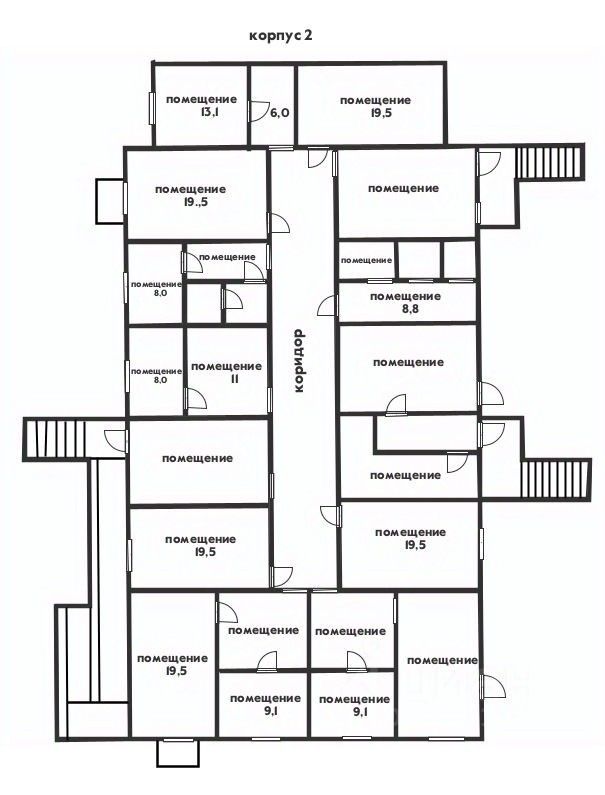 Помещение имеет 12 комнат и включает: