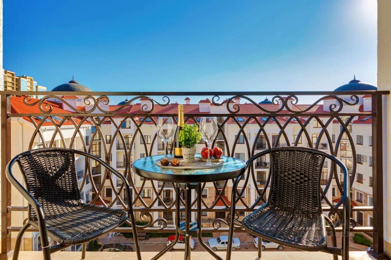 - Балкон со столом и стульями для отдыха на свежем воздухе