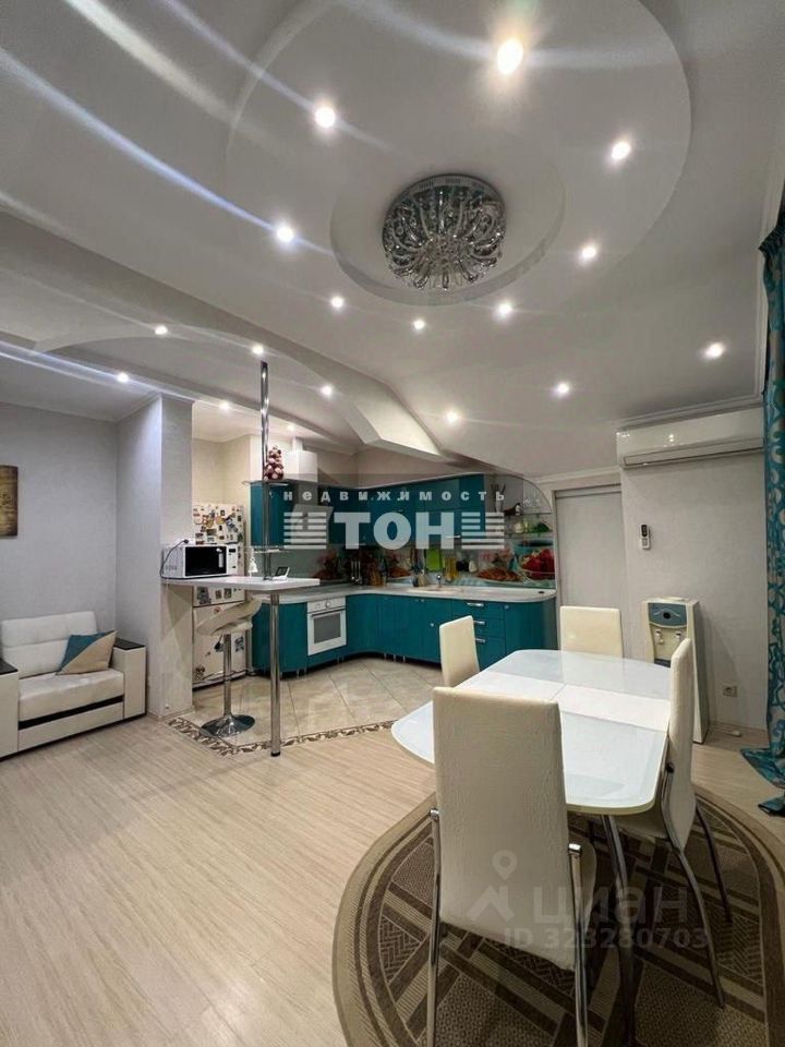Большая кухнягостиная, три изолированные спальни, два раздельных санузла, две кладовки.