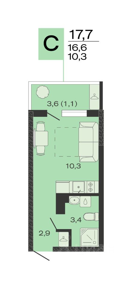 Общая площадь17,7 м2