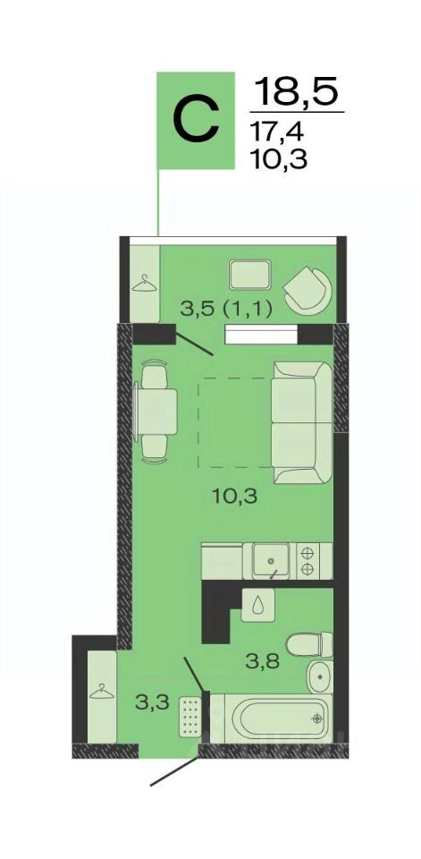 Общая площадь18,5 м2