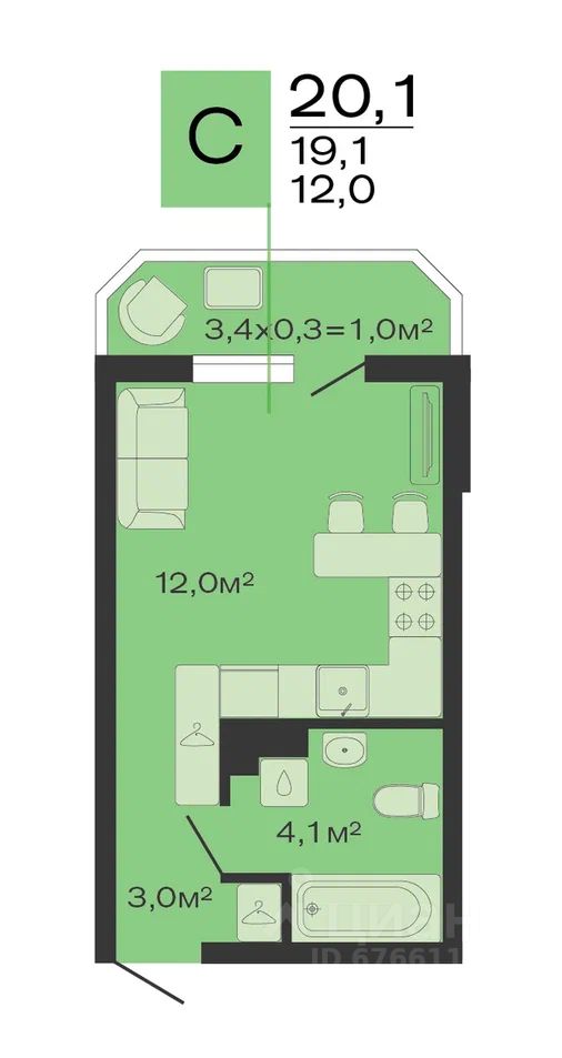 Общая площадь20,1 м2