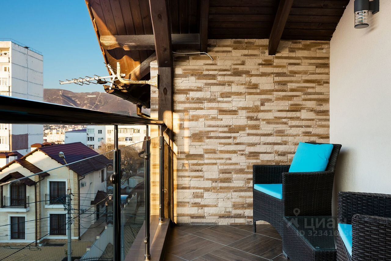 На третьем, мансардном этаже - находится спальня и большая комната отдыха с выходом на просторную террасу с великолепным видом на бухту и город.
