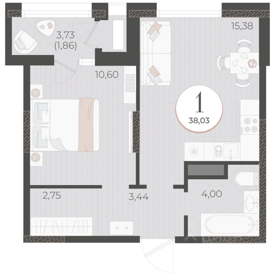 Общая площадь38,03 м2