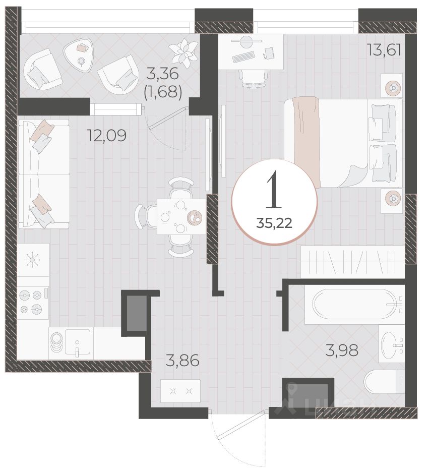 Общая площадь35,22 м2
