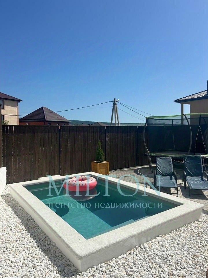 Продам дом с участком на киевском поле, новый достаточно молодой застроенный коттеджами район Геленджика. Расположенный в пешей доступности до остановок общ. транспорта, вблизи супермаркеты и магазины. В 7 мин. ходьбы до Геленджикского проспекта и 25 мин. до моря. Дом имеет панорамную эксплуатируемую кровлю с возможностью наблюдать все окрестности Геленджика в том числе и видом на море, также имеется 3 балкона. Все виды на фото. Дом полносью готов к проживанию со всеми необходимыми для комфортной жизни условиями. Современный ремонт, техника ТВ и бытовая в каждой комнате сплит системы, кухня, мебель, кровати, шкафы вобщем все что необходимо. Все новое покупалось и строилось для себя. На участке пешие и парковочные зоны облагорожены брусчаткой. По периметру дома высажены туи и розы в кашпо, по другой стороне дома зеленый газон с системой автополива. Также присутствует две зоны при въезде с комплектом садовой мебели из ротанга и зона барбекю также обустроена белым ротанговым угловым диваном и столом из лиственницы. Терраса выходит на монолитный бассейн с системой автодозации химии и многофункциональной подсветкой. У бассейна расположена зона шезлонгов для загара. Размер бассейна 4х2,5м. глубина 1,5 м. Мангал передвижной. Батут детский. Шезлонг качели. Собственный септик. Скважина с оборудованием. Электрическое отопление, теплые полы по всем комнатам с возм. регулировки и отключения. Эл.-во 3 фазн. Дом в отличном состоянии. документы готовы к сделке.