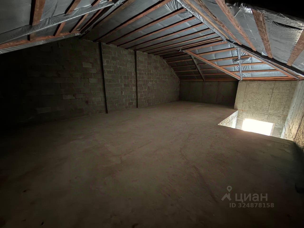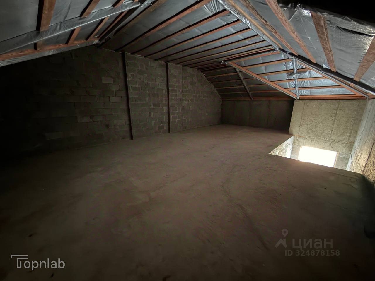 На третьем этаж: мансарда 63 кв.м свободной планировки.