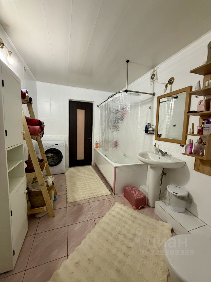 Большой санузел, где размещаются стиральная и сушильная машины. Мебель, холодильник, газовая плита, сплит-системы, стиральная машина. Все остается.