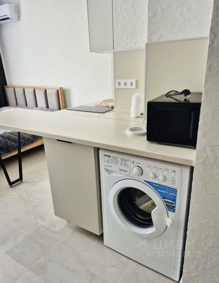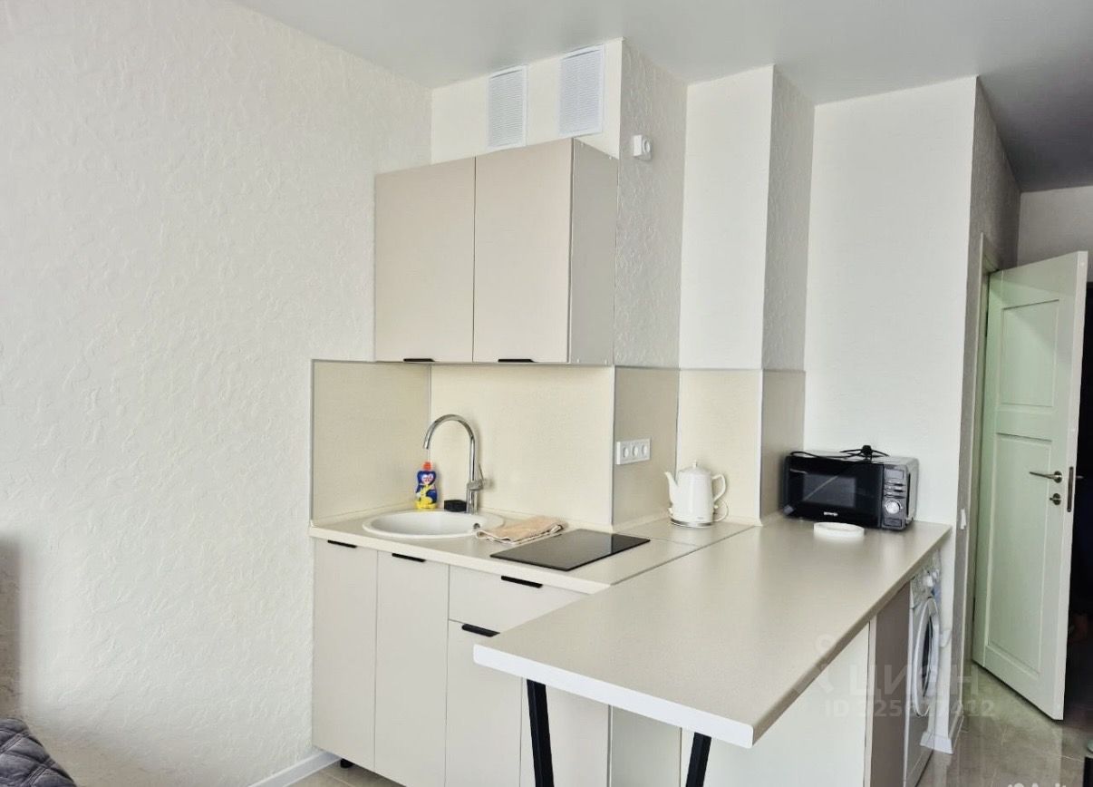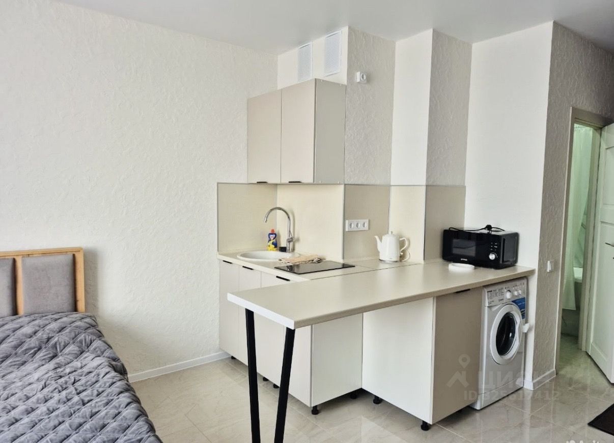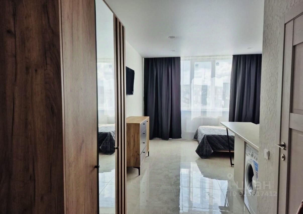 Сдается стильная студия с современным ремонтом на 21 этаже блочного дома. В квартире выполнен евро ремонт, что создает уютную атмосферу. Просторная жилая зона площадью 25 м² включает в себя функциональную кухню с необходимой техникой, включая микроволновку и стиральную машину. В комнате установлены шкафы для хранения вещей и удобный диван. Из окон открывается приятный вид на город. В санузле установлена современная сантехника и душевая кабина. Для вашего удобства в квартире имеется кабельное/цифровое ТВ. Дом оборудован пассажирским и грузовым лифтами, а также наземной многоуровневой парковкой. Во дворе предусмотрена открытая парковка за шлагбаумом. Курение запрещено, но можно проживать с детьми. Животные не допускаются.