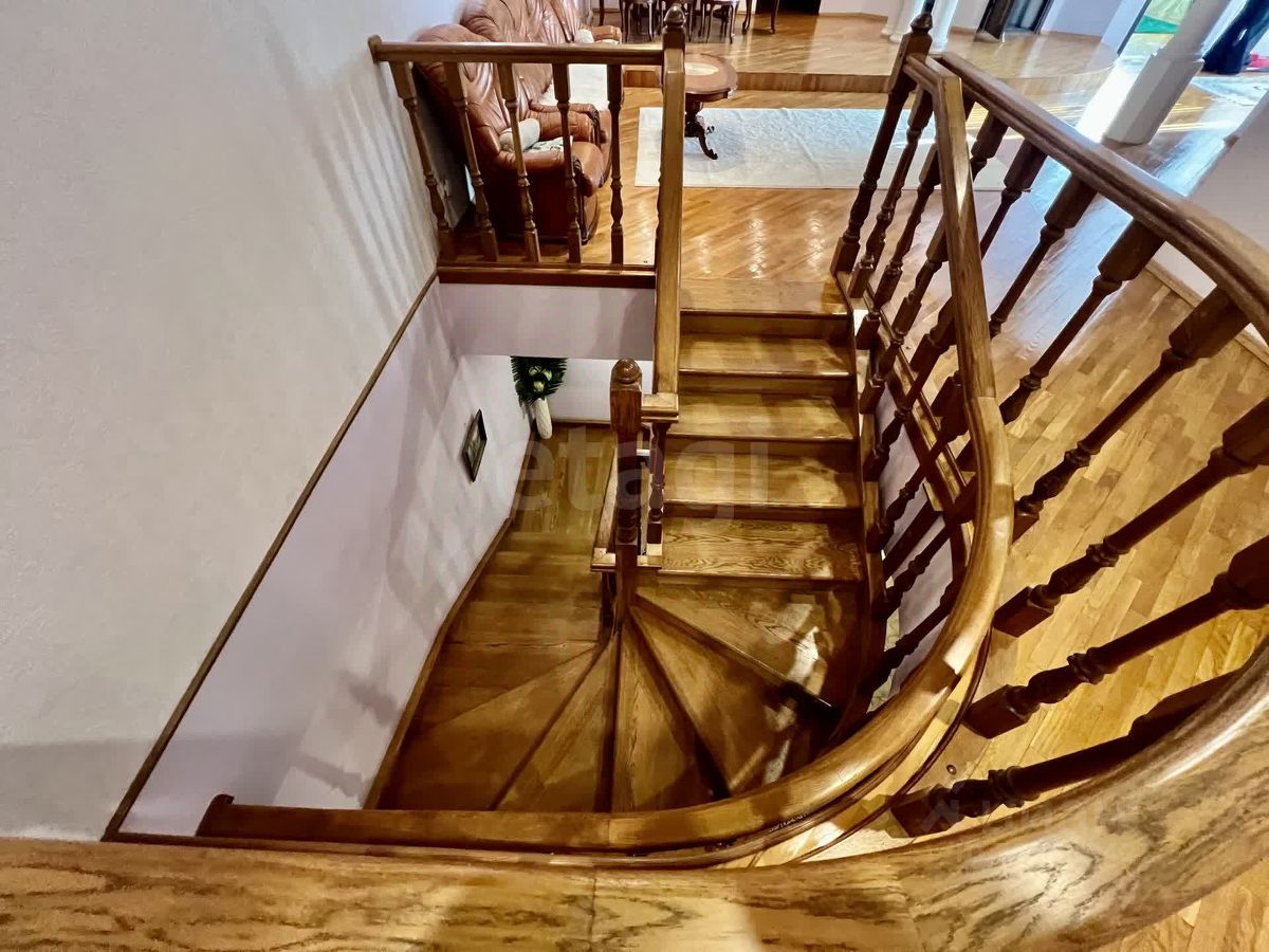 Продается просторная двухуровневая квартира в центре города, площадью 300 кв. м. Объект отличается продуманной планировкой: на первом этаже расположена светлая гостиная-столовая с большой кухней, спальня с гардеробной и балконом, отдельный хозяйственный блок с прачечной и санузлом. Второй этаж включает три изолированные спальни, кабинет, библиотечную зону и просторный холл.