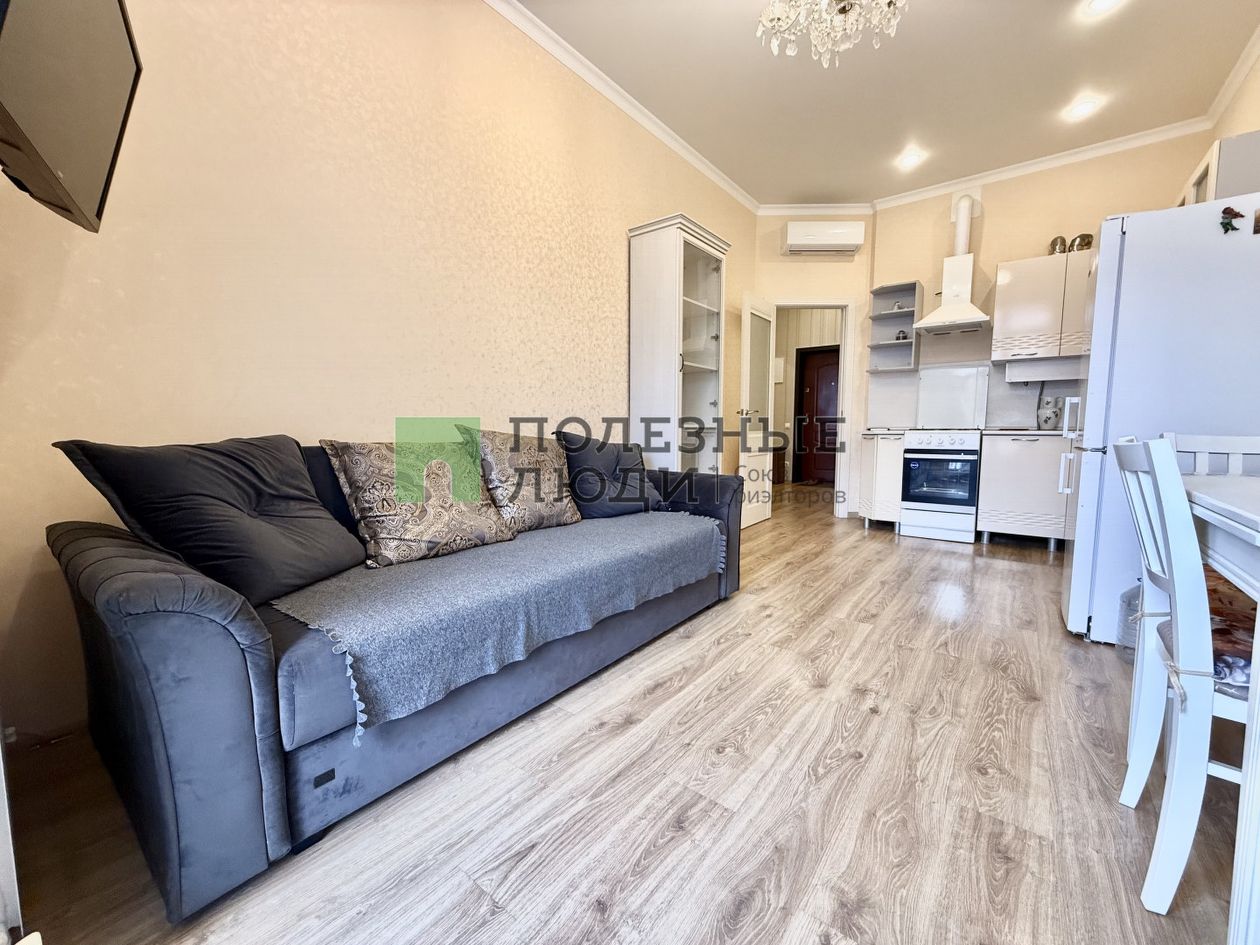 О КВАРТИРЕ: - Общая площадь квартиры 44.5 кв.м - Функциональная планировка: просторная кухня 14.8 кв.м, жилая комната 19 кв.м, прихожая 7.4 кв.м, санузел 4.3 кв.м, балкон 3.6 кв.м. - Есть просторная гардеробная комната -Интерьер квартиры выполнен в спокойных пастельных тонах с использованием качественных отделочных материалов - Один собственник - Остается вся мебель и техника -Квартира прекрасно подойдет как для жизни, так и для инвестиций. Аренда квартир в данном комплексе одна из самых востребованных в городе.
