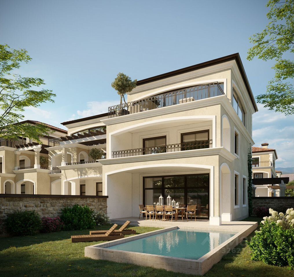 — Архитектура: Элегантный средиземноморский стиль с панорамными окнами.