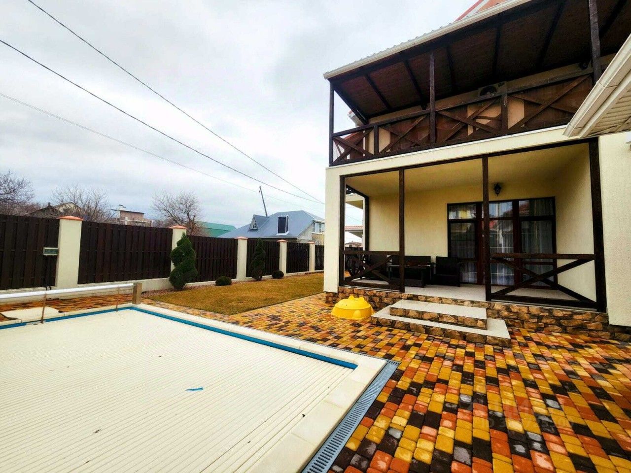 Предлагаю к продаже великолепный дом в мкр. Голубая бухта. Дом двухэтажный на участке площадью 4,5 сотки. Первый этаж состоит из большой кухни-гостиной с выходом на просторную веранду под навесом, спальни, санузла и технической комнаты. На втором этаже - санузел, три спальни, две из которых имеют выход на большую террасу. В доме автономное газовое отопление, радиаторы во всех комнатах, теплый пол на первом этаже и в санузле на втором. В каждой комнате установлены сплит-системы. Вода в настоящее время подается из скважины, а канализация - септик, однако центральные коммуникации (вода и канализация) уже подведены к дому. Вода в доме проходит трехступенчатую систему очистки. В кухне встроенная мебель и техника, включая посудомоечную машину, духовой шкаф, варочную поверхность. Бесперебойная работа Интернет, ТВ и WI-FI в наличии. Территория вокруг дома благоустроена, замощена плиткой, устроен газон с декоративными насаждениями и плодовыми деревьями, предусмотрена система полива. Есть бассейн размером 3x6 метров с автоматическим пологом. Также на территории расположен небольшой домик с мангальной зоной, гараж с автоматическими воротами и крытая парковка. Дом без обременений, никто не прописан. Установлена система видеонаблюдения. Данный дом порадует покупателя современной продуманной планировкой, стильным качественным ремонтом и обеспечит комфортное проживание семьи. Юридическое сопровождение бесплатно. ID объекта в нашей базе: 1141