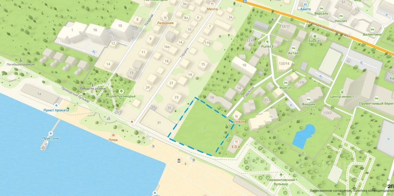 Земельный участок по адресу: г. Геленджик, Приморский бульвар 3 (ул. Радужная-ул. Герцена.).