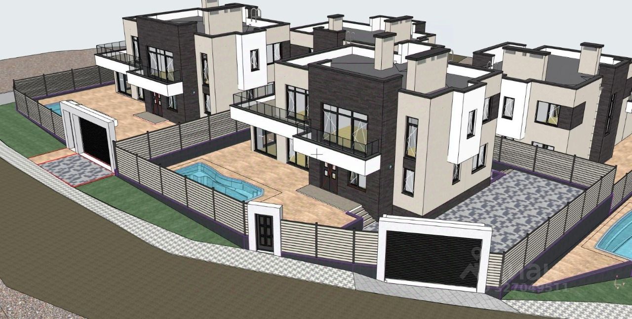Каждый дом имеет по четыре спальни, все спальни со своими сан.узлами и гардеробной, большая гостинная с летней террасой с панорамными окнами.