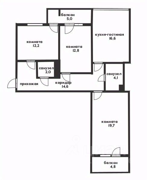 В квартире: 3 ОТДЕЛЬНЫЕ спальни (12+13+20) и просторная кухня-гостиная (17м2).