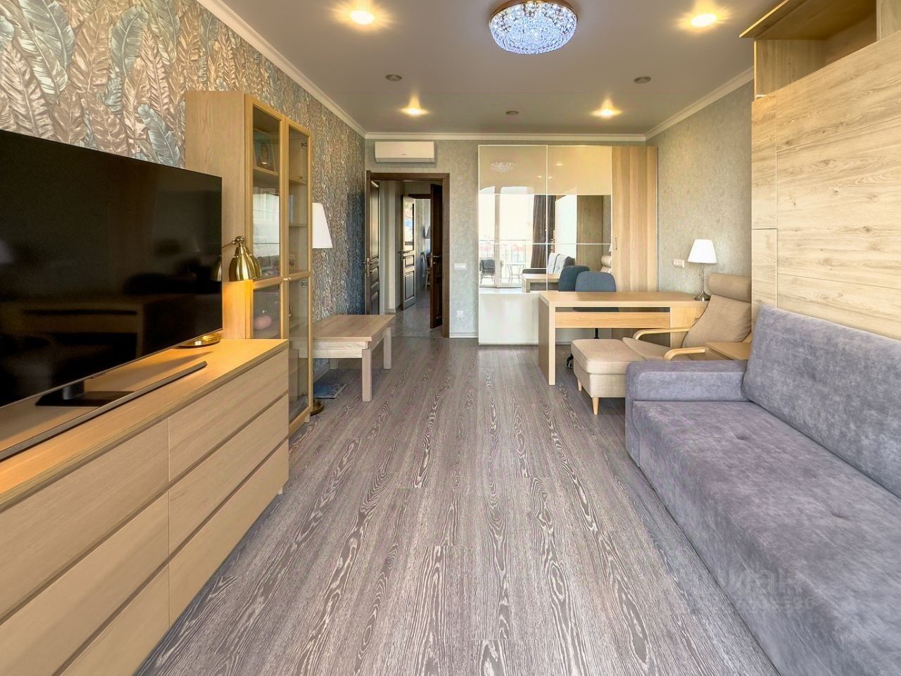 В квартире все продумано до мелочей, с учетом особенностей города, комфорта и безопасности семьи: теплые полы по всей квартире, включая санузлы и лоджии, во всех комнатах кондиционеры над дверями, 3 интернет-канала, система видеонаблюдения.