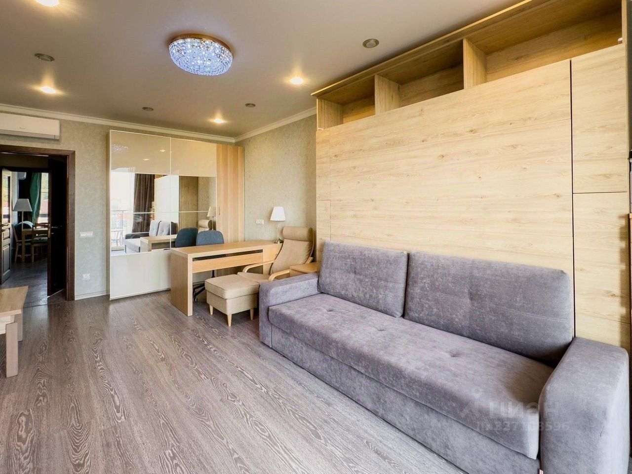Спальня с видом на море также оборудована УСИЛЕННЫМ панорамным остеклением VEKA со сдвижной дверью-слайдером и выходом на вторую лоджию (5м2). Это Ваш личный оазис спокойствия и вдохновения. В спальне установлен диван-трансформер с ортопедическим матрасом, шкаф-купе с раздвижными дверями, рабочее место.